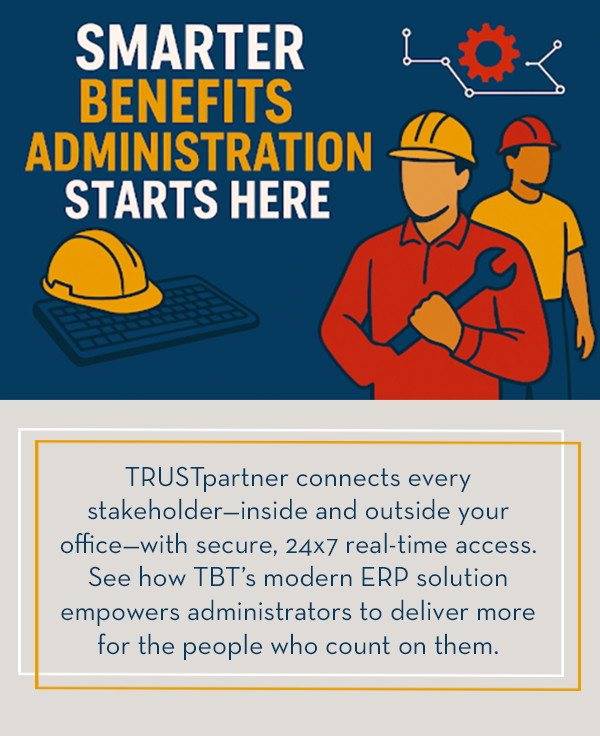 TBT was formed to design, develop and support multiemployer benefits administration software for Taft-Hartley trust funds. Backed by nearly forty years of experience, combined with solid alliances with complementary third-party vendors (e.g., Oracle, CrowdStrike, Jasper Reporting, and others), TBT’s HIPAA-compliant software products provide powerful, flexible and easy-to-use administrative solutions for benefit plan administrators. TBT’s experienced resources deliver the following IT services to its new and existing client relationships: consulting, project management, data conversions, business analysis, technical designs, programming, training, implementation and subsequent support.